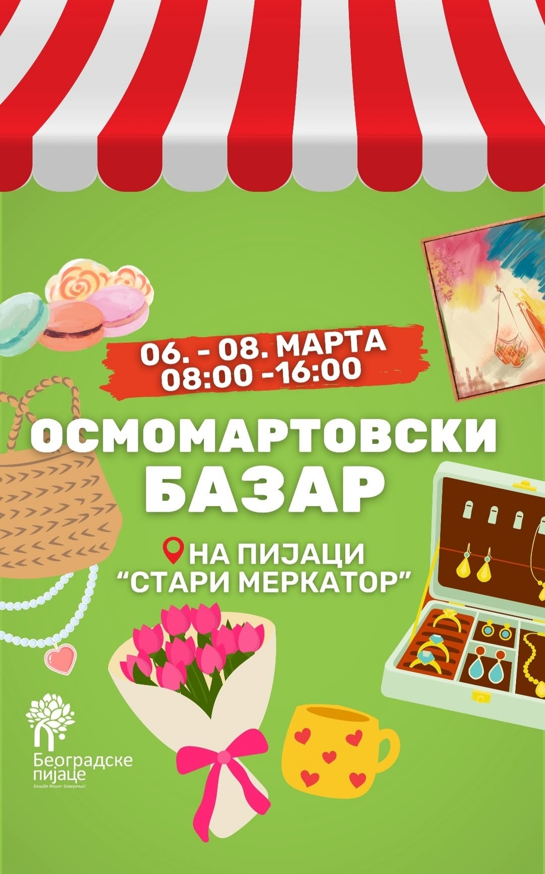 Povodom Međunarodnog dana žena, na pijaci „Stari Merkator“ biće održan Osmomartovski bazar od 6. do 8. marta, u periodu od 08:00 do 16:00 časova.