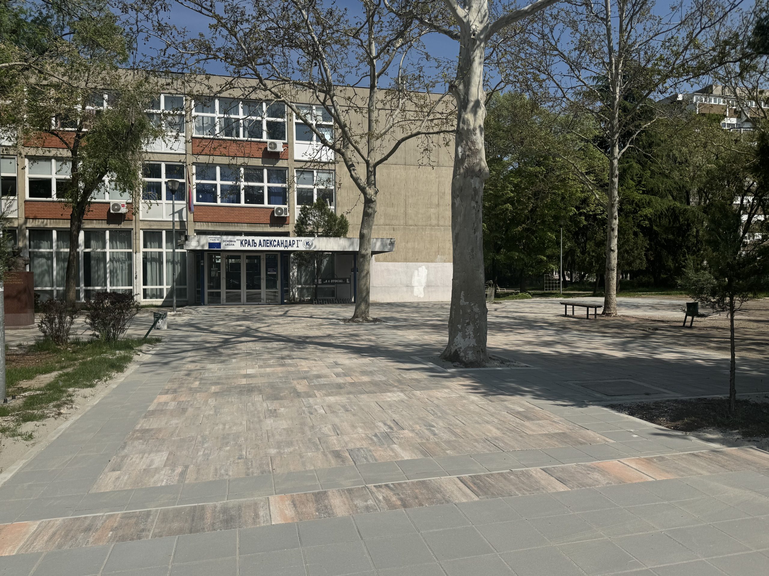 Gradska opština Novi Beograd finansirala je popločavanje dela dvorišta i uređenje prostora ispred ulaza u Osnovnu školu „Kralj Aleksandar I“. Tim radovima nastavljene su aktivnosti Opštine na stvaranju boljih uslova za boravak i odvijanje nastave u školama.